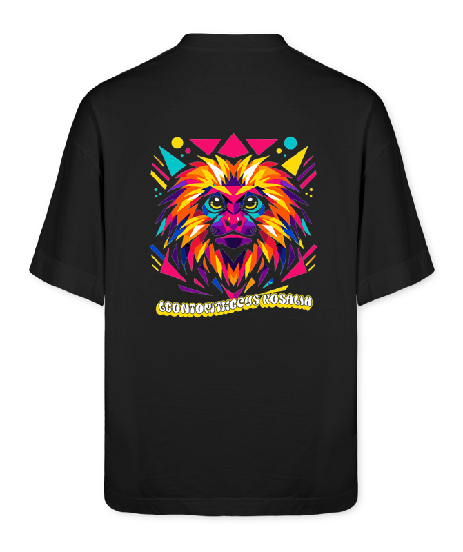 O primata que só ocorre na Mata Atlântica do Rio de Janeiro em um estilo pop geométrico, transformando natureza em arte contemporânea. Proteja o mico-leão-dourado!
